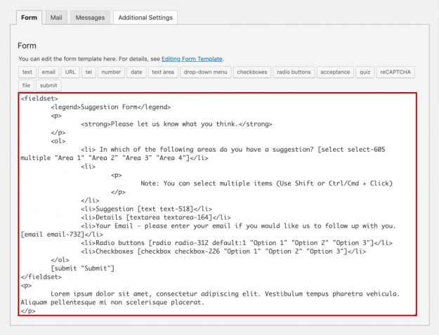 You can start creating your own Suggestion Form with our free Suggestion Form templateTemplate CF7 Skins Templates are the structure of your form, providing the content and layout. They act as an easy to follow guide that can be adjusted to your particular needs.. Contact Form 7 (CF7) includes a default form template, but it…