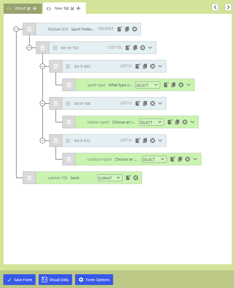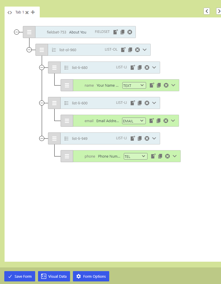 Tip: Each tab in the CF7 Skins Visual Editor is transformed into a new page in the final form.