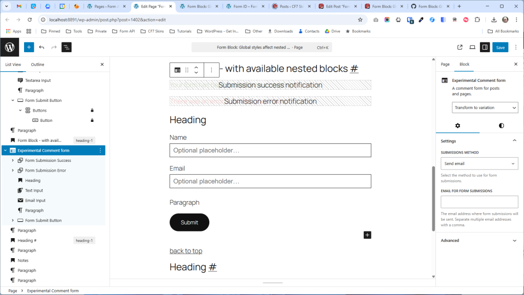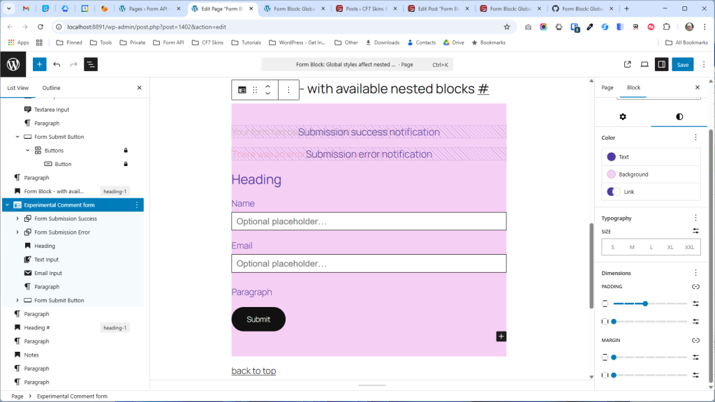However, the crucial point is that these styles are scoped to the specific instance of the Form block to which they are applied. They will not affect other <form> elements on the page or post unless those elements also happen to be instances of the Form block and have the same styles applied to them.