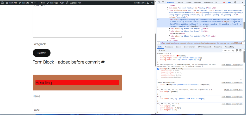 Vertical Padding style added to Form Block – not clear if Heading & Paragraph not changed
