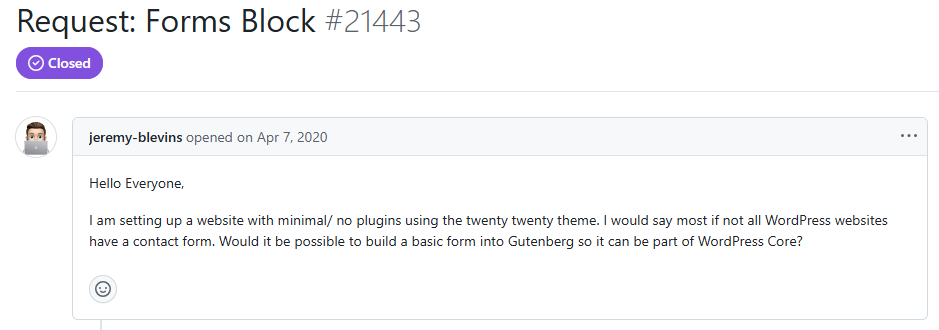 I’m so pleased to see the Gutenberg team has started to develop a Form block for WordPress core.